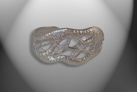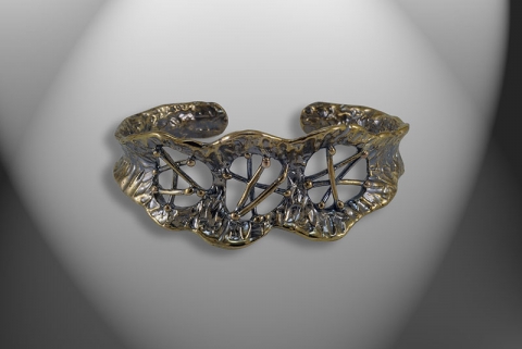 Pulsera en plata de ley acabado en oro oxi. Diseño de Máximo Betro.