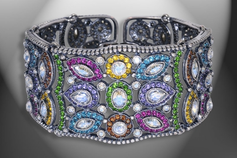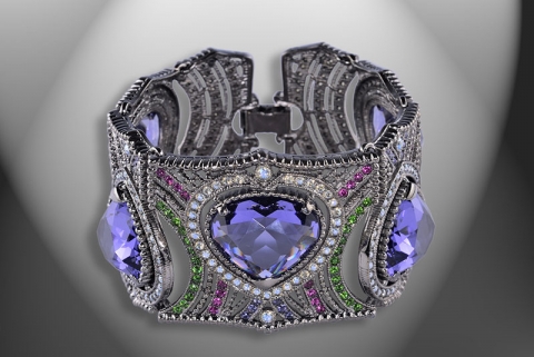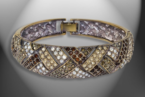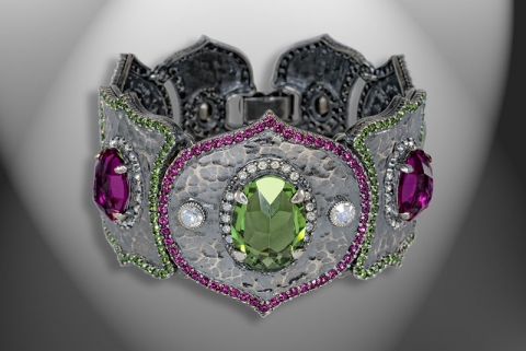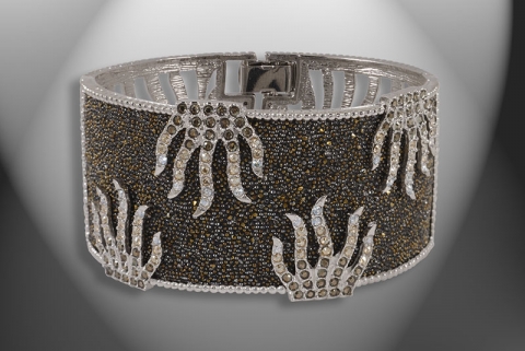 Pulsera en plata de ley con cristales de Swarovski y acabado en oro oxi . Diseño de Máximo Betro.