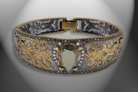 Pulsera en plata de ley con cristales de Swarovski acabado en oro oxi. Diseño de Máximo Betro.