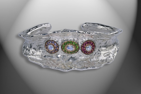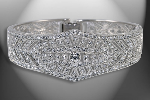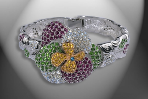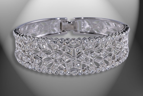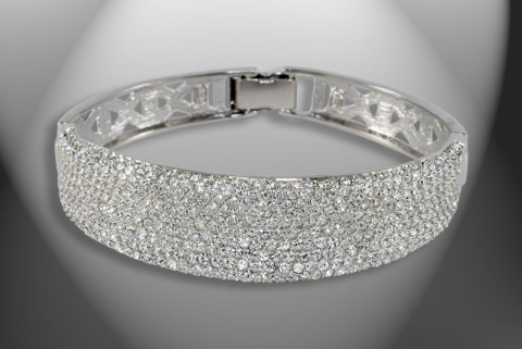 Pulsera en plata de ley con cristales de Swarovski y baño en rodio. Diseño de Máximo Betro.