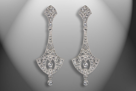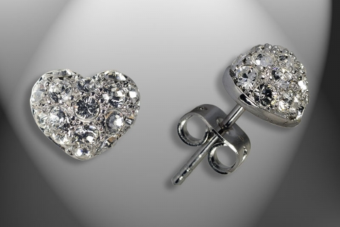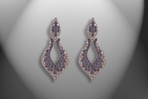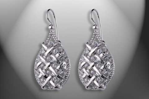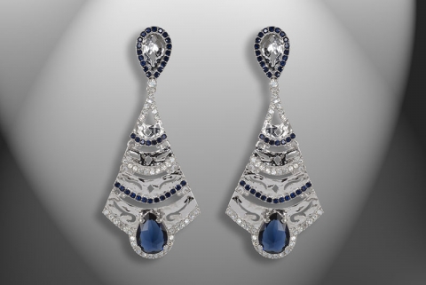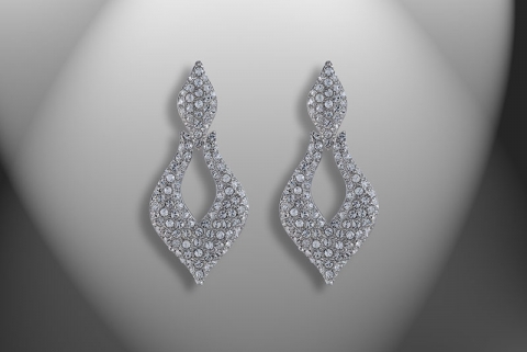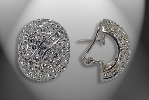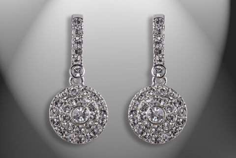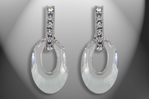 Pendientes en plata de ley con cristales de Swarovski y baño de rodio. Diseño de Máximo Betro.