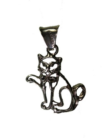 Colgante Gato. Peso 1.6 Gr en Plata 800. Medidas 3x1 cm