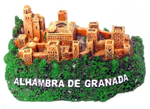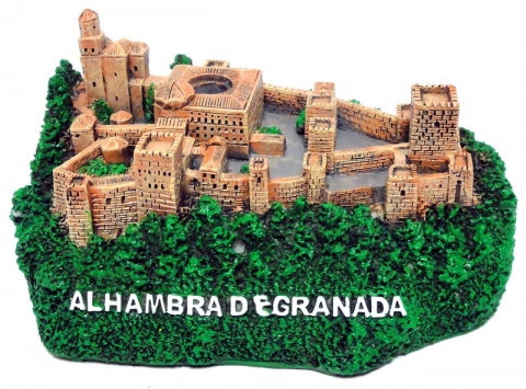 Maqueta de la Alhambra de Granada en resina policromada. Medidas(LxAxH):6x4.5x3.2 cm