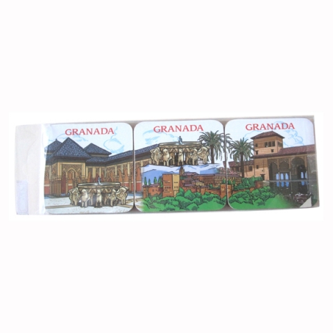 Posavasos Puzzle Granada 10x10cm. Base de corcho y superficie gráfica con fijación plastificada.