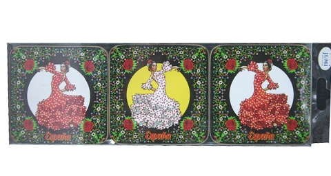 Posavasos Flamenco 10x10cm. Base de corcho y superficie gráfica con fijación plastificada.