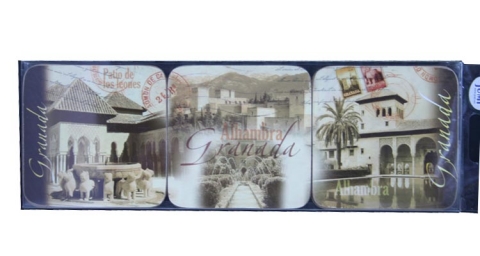 Posavasos Nostalgia Granada 10x10cm. Base de corcho y superficie gráfica con fijación plastificada.