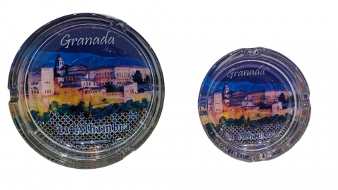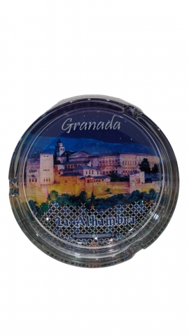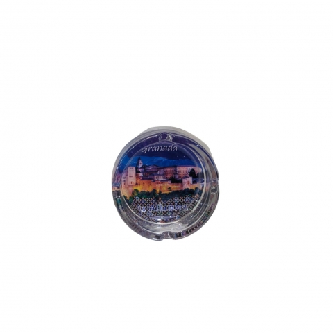 Cenicero de cristal con vistas de Granada de 10 cm Ø.