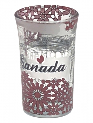 Chupito cristal con policromia roja y motivos de Granada.