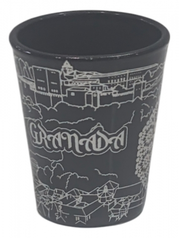 Chupito cristal en negro y motivos de Granada.