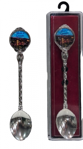 Granada souvenir metal spoon with views of Granada. Length 13 cm.