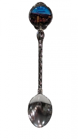 Cucharilla recuerdo de Granada en metal con vistas de Granada. Largo 13 cm.