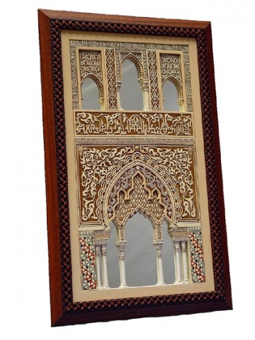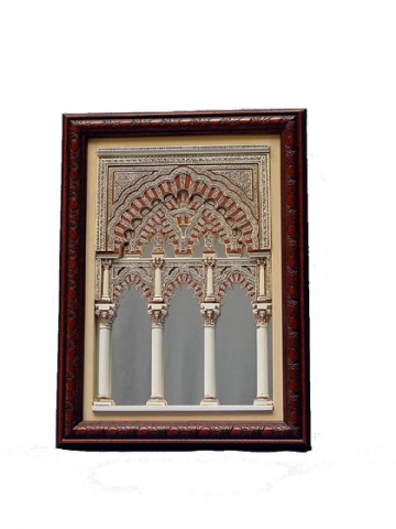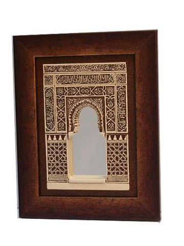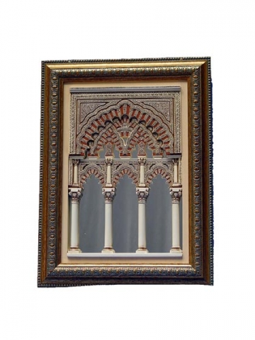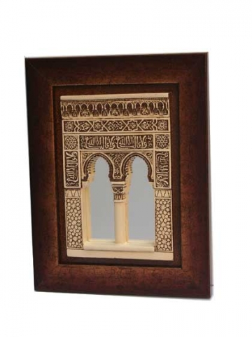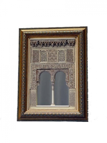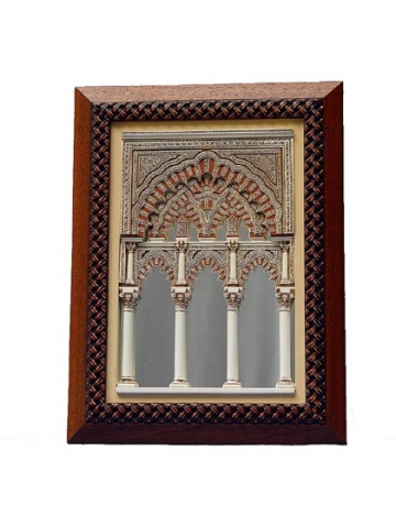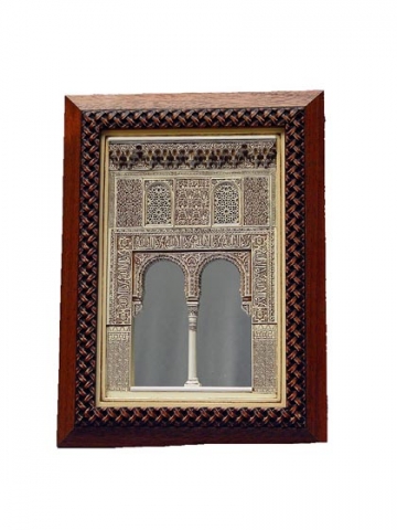 Cuadro "Arco nazarí doble " con fondo de espejo y moldura nogal clásica troquelada 20*26 cm.
