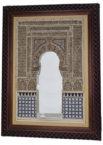 Cuadro "Nazarí " con fondo de espejo y moldura nogal taracea 75*47 cm.