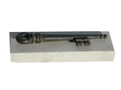 Réplica en colgante de "La Llave de la Alhambra " en miniatura de 14 cm. realizada en Bronce .Precio Orientativo sin confirmar. Obra de Miguel Moreno. Con base de mármol.