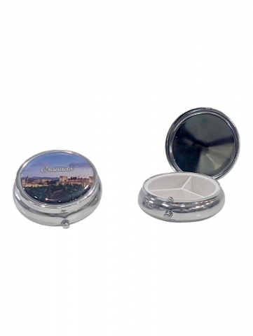 Pastillero redondo con motivos de Granada. Medidas 5 Ø cm.