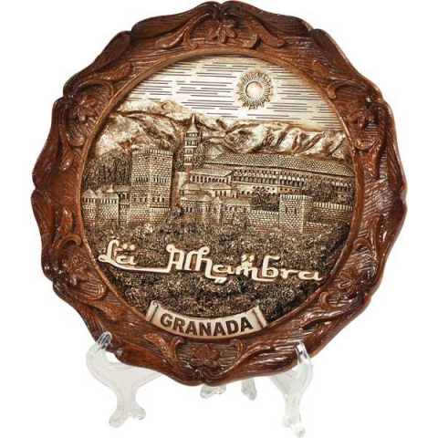 Plato La Alhambra imitacion madera en resina. Medida 20cm.
