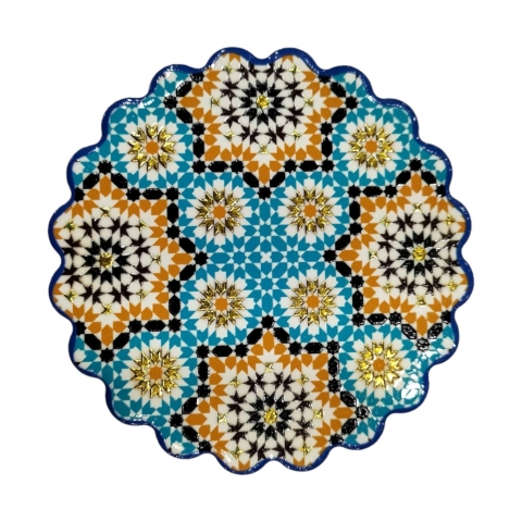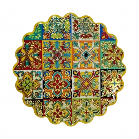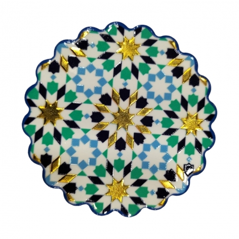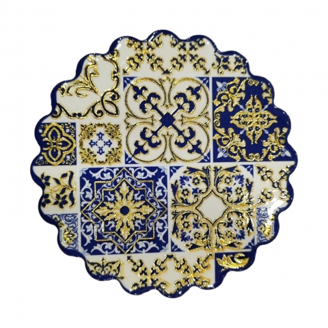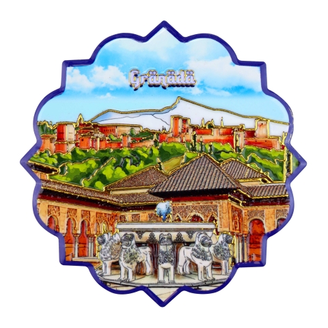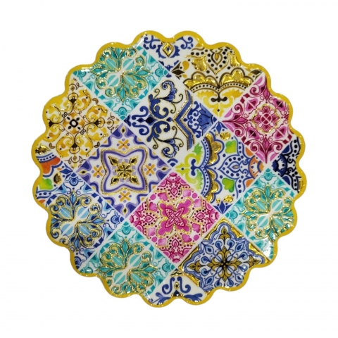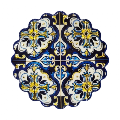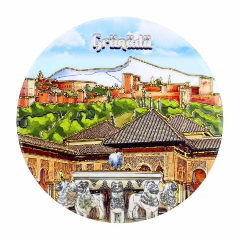Ceramic coaster with Granada motifs. Decorated with embossed gold. Measures 11 x 11 cm. Available in three designs. Finished in Mandala.