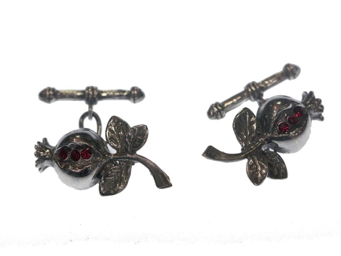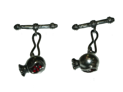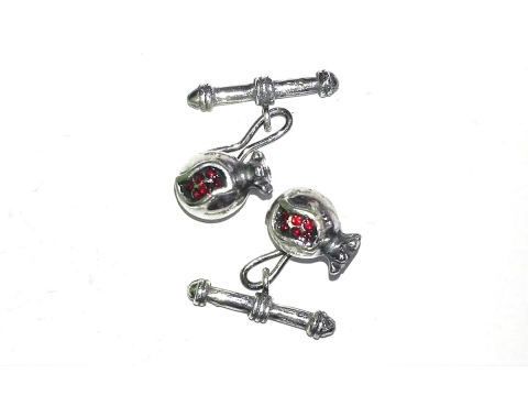 Gemelos de Granada. Realizada en Plata de Ley 925. Medidas 12 mm Ø. Peso 9 gr.