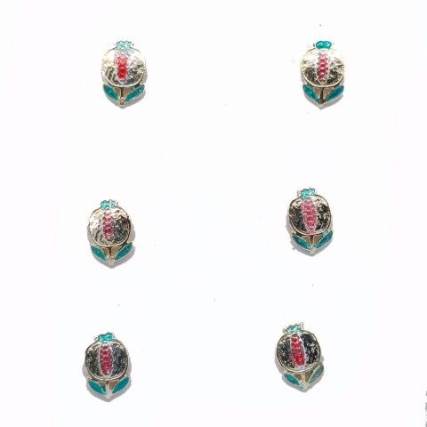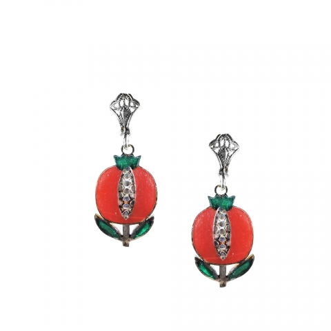 Pendiente Granada de presión en Plata de Ley con esmalte rojo. Medidas (Largo x Ancho) 0.6 x 1 cm.