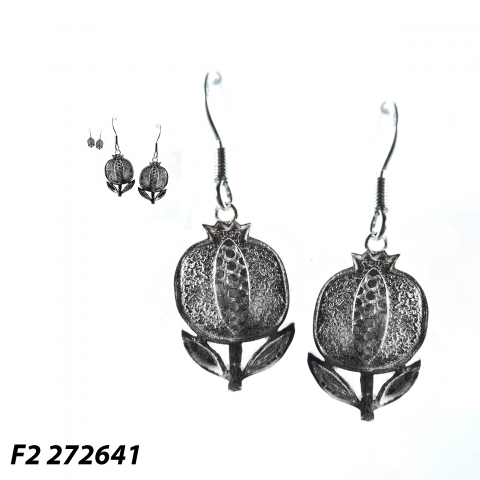 Pendiente Granada en Plata de Ley. Peso 0.6 gr aprox. Medidas 1 x 0.7 mm.