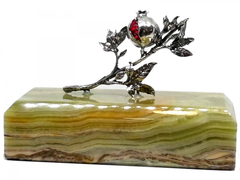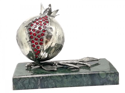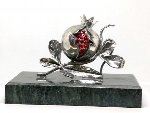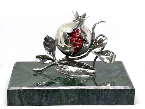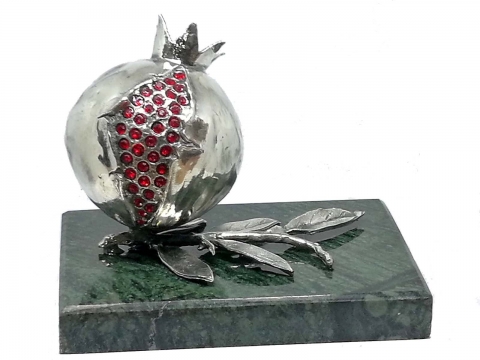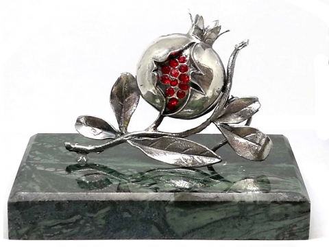 Granada paperweight nº 7 in silver plated Alpaca. Weight 220 gr approx. Marble measures 14x10x2 cm and Granada measure 12x7X9 cm. Diameter of the head of the Granada 7 cm Ø.
