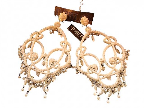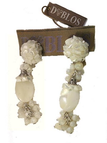 Earrings Conquilla pieces and balls white Nácar. Design Dublos.