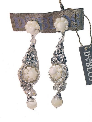 Bead Earrings Pearl and Swarovski. Close Omega. Dublos Design. Measures 9x 1.5 cm.