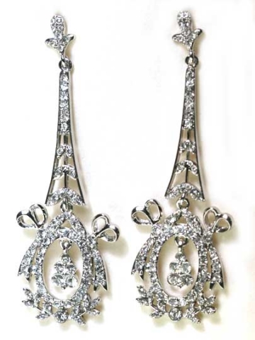 Rhodium metal earrings with crystal designed by Cano. Measures 65x23 mm.