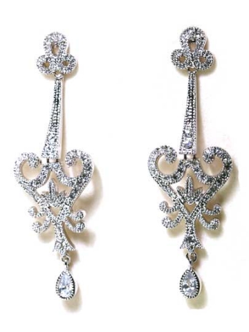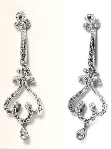 Rhodium metal earrings with crystal designed by Cano. Measures 55x18 mm.