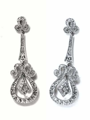Rhodium metal earrings with crystal designed by Cano. Measures 50x18 mm.