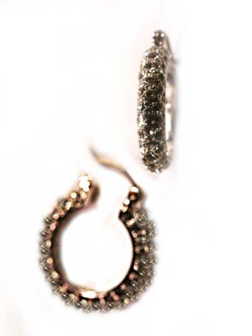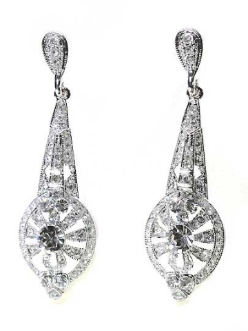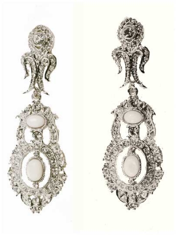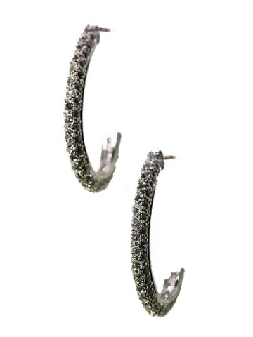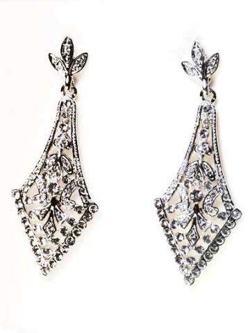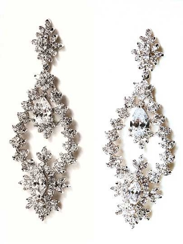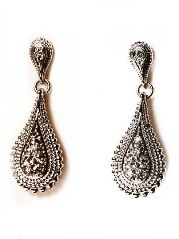 Rhodium metal earrings with crystal designed by Cano. Measures 30x20 mm.