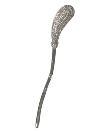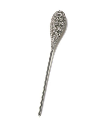 Aguja Japonesa para el pelo. Color plateado con cristales de alta calidad.Medidas: 2,5 x14 cm