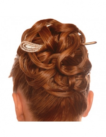 Aguja Japonesa para el pelo. Color dorado con cristales de alta calidad.Medidas: 2,3 x15,5 cm