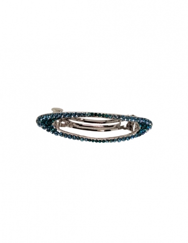 Pasador de pelo Cisla color plata con cristales azul petróleo. Medidas: 9,3 x 1,2 cm