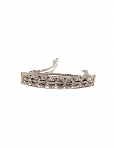 Pasador en metal plateado con cristales. Pasador joya para invitada de boda.