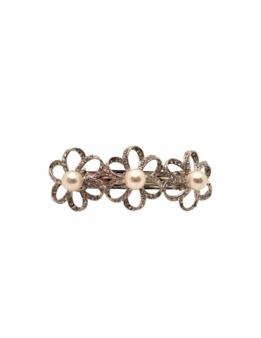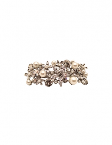 Silver metal hair clip with Kira pearls. Jewel hair clip for wedding guest.
