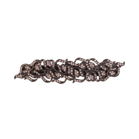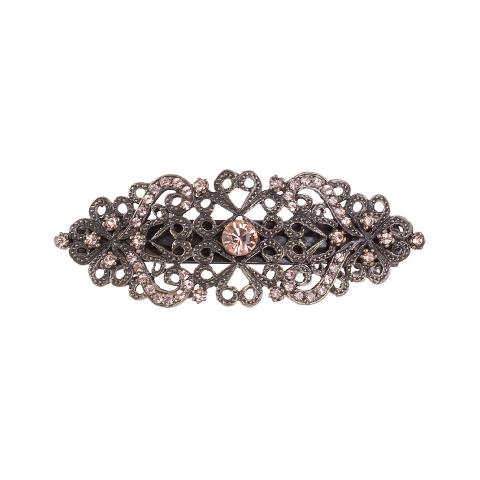 Sona Bronze Hair Clip finished in bronze color and pink crystal. Jewelry barrette for wedding guest. Measurements: 11 x 2.5 cm
