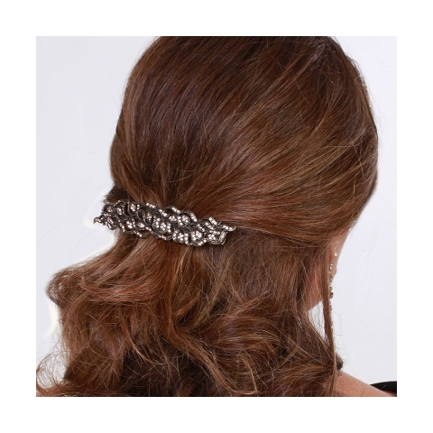 Silver metal hair clip with crystals. Jewel hair clip for wedding guests.