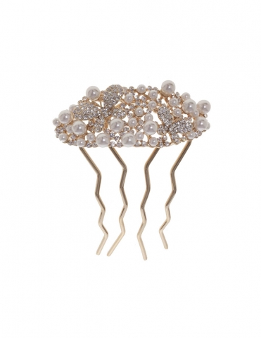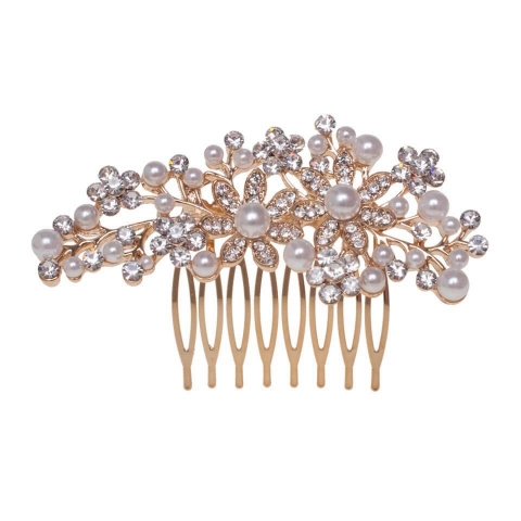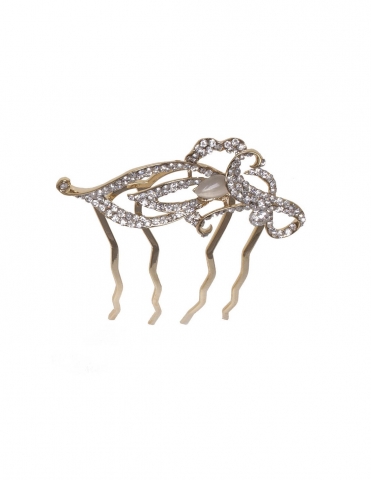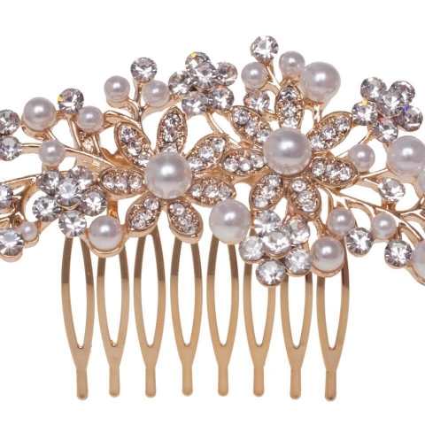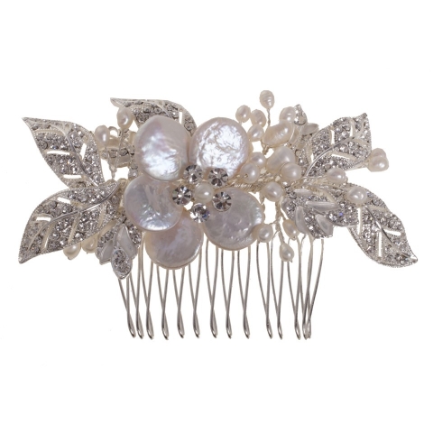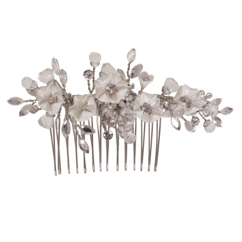 Bridal comb with very special details: mother-of-pearl flowers, natural pearls and top-quality crystal.