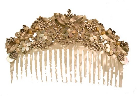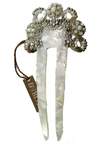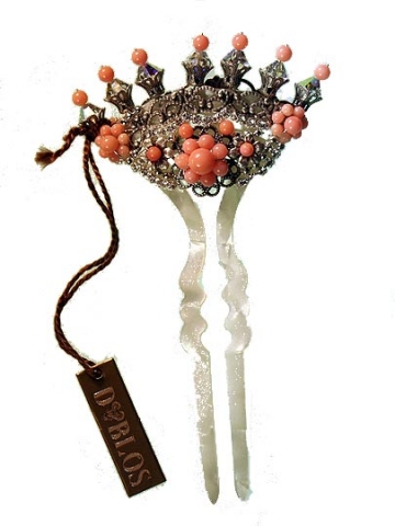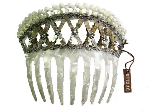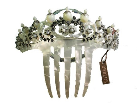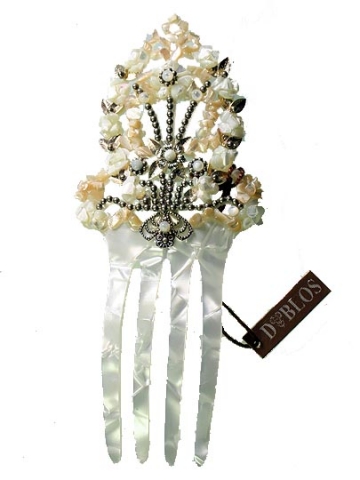 Peina Bolas y pipitas cruzadas de nácar. Adornada por ambas caras. Diseño de Dublos.
