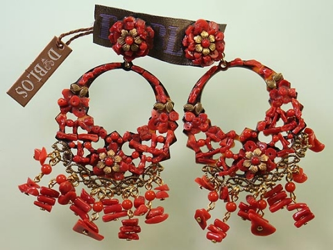 Pendiente gancho trozos de coral . Diseño de Dublos.