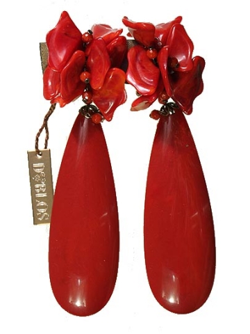 Earrings of coral teardrop earrings. Design Dublos. Approximate measurements 9*4cm