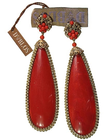 Earringwith tear resin. Dublos design. Measures 11 cm x2.8. Color Coral.
