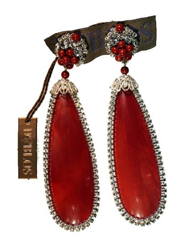 Earring with tear resin edged by three rows of glass Swarovki. Dublos design. Measures 9.6 x 2.6 cm. Coral color.
