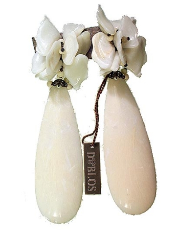 Earring with tear resin. Dublos design. Measures 11 cm x2.8. Color Evory.